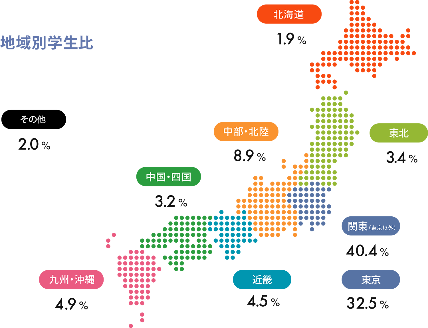 「昼間スクーリング」「夜間スクーリング」「東京スクーリング」「地方スクーリング」「夏期スクーリング」の5つのスクーリング(通学授業)があります。毎日通学したい方も,仕事と両立したい方も,スポーツと両立したい方も,遠方にお住いの方も,自分のスタイルにあわせた受講が可能です。