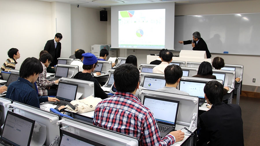 コンピュータの構造や歴史,情報倫理などを講義形式で学び,実際にコンピュータを操作しながら必要技術を修得します。また,文書作成,表計算,プレゼンテーション等が十分に活用できる技術を身につけます。