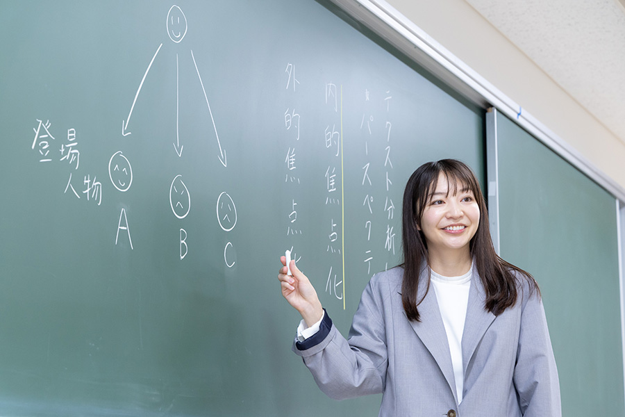 日本語と日本文学に関する総合的な研究に基づいた教育を通じて,中学校・高等学校等の国語科教員をはじめとした,日本語学・日本文学・日本文化に関する深い知識と,それらを駆使した優れた思考力,対話力,文章力,プレゼンテーション能力を持つ人材を育成します。