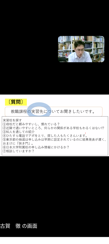 担当教授の古賀 徹 先生を交え,教職課程(先生の免許をとるための内容)を中心に,