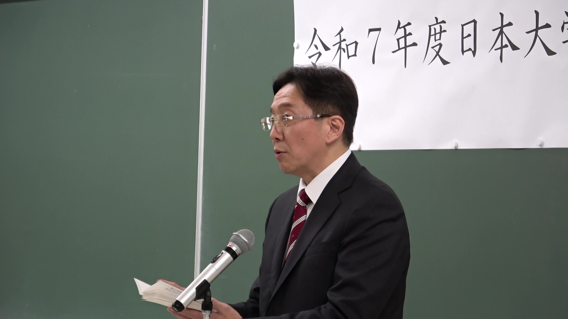 春風が心地よく吹き抜け、桜が咲き誇る今日の佳き日に、皆さんを日本大学通信教育部にお迎えできることを、教職員一同、心より嬉しく思っております。新たな学びの第一歩をここから踏み出される皆さんに、あらためて歓迎の意を表します。